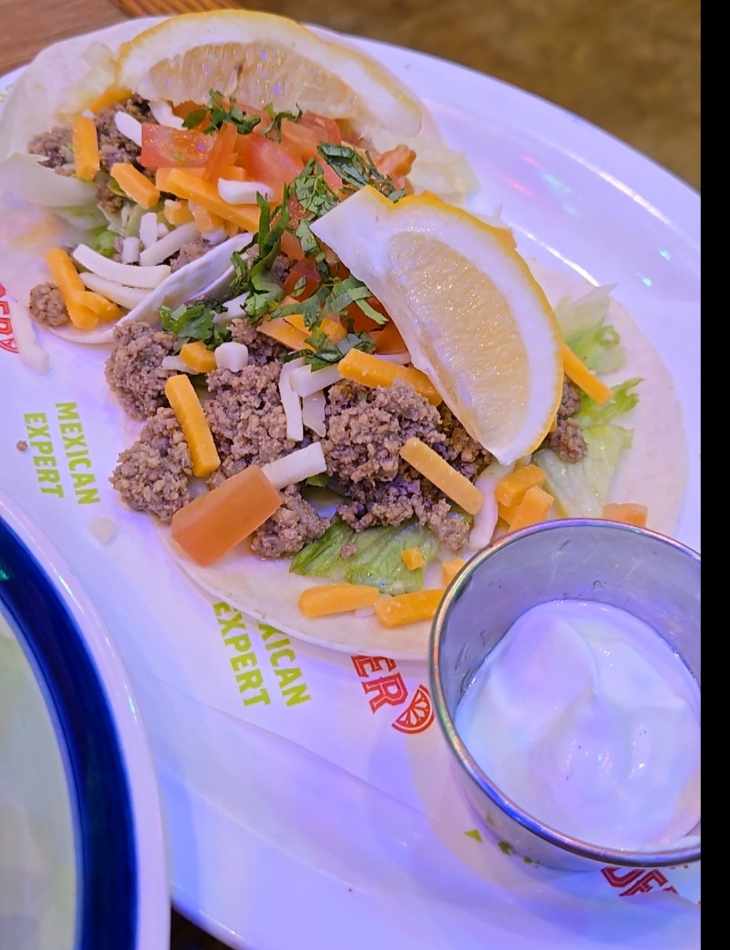 타코는 새콤한 소스가 일품인데 레몬즙을 뿌려 먹으면