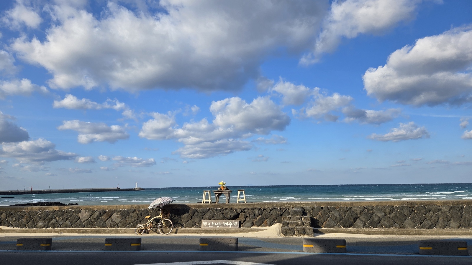 제주 바다를 바라보며 "안녕, 제주"에 맞춰 사진을 찍어 인생샷을 남겨보세요