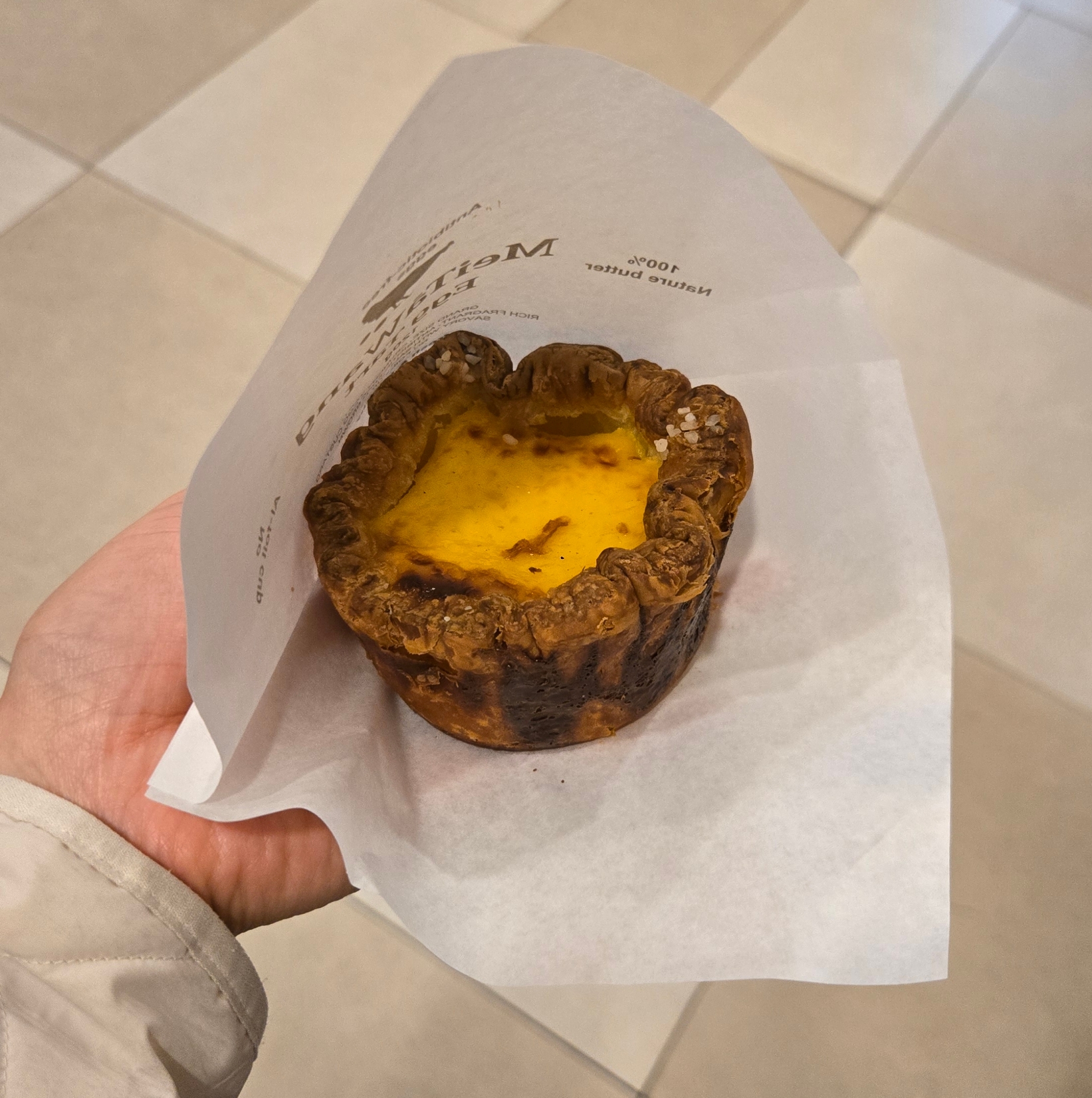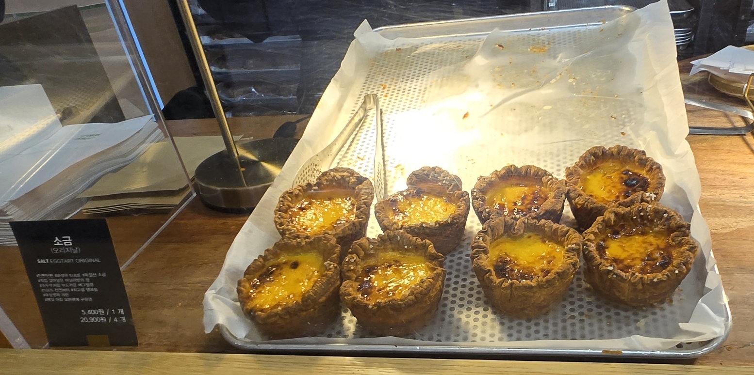 갓 구운 상태에서 제공되기 때문에 한입 베어 물면 고소한 버터 풍미와 달콤한 계란 크림의 조화가 입안에서 사르르 녹는 느낌이었어요